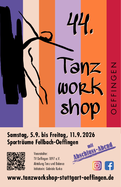 44.Tanzworkshop des TVOeffingen, Abteilung Tanz und Balance vom Sa. 5. - Fr. 11.09.2026.